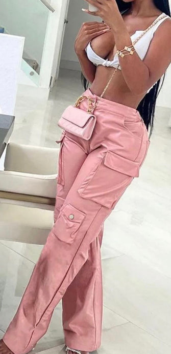 Faux Leather Cargo Pants