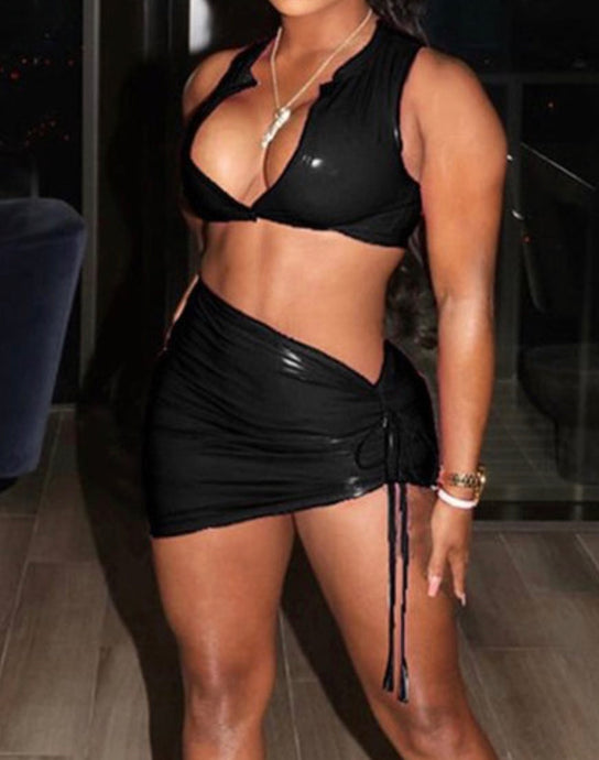 Faux Leather 2Pc Skirt Set